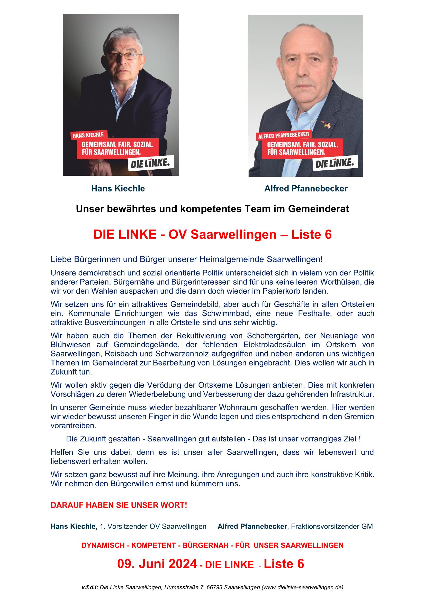 gez. Hans Kiechle, Partei-und stellv. Fraktionschef DIE LINKE Saarwellingen.